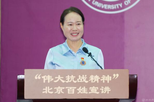 报告会上,北京市房山区委党校刘金玲,中国人民抗日战争纪念馆志愿讲解员林汉京,中央民族大学学生吴怡萱,房山区退休音乐教师邢秀花,北京市西城区第一军休所退休军官、战时一等功荣立者王曙光6位宣讲员,分别以《红色马安的“两面锦旗”》《吉鸿昌,永远的英雄》《“731”,不能忘却的烙印》《在歌声中讲述党史》《磨刀声声铸脊梁》《永远的军魂》为题,用百姓语言讲英雄史诗,从马安村两面锦旗到吉鸿昌就义诗,从731遗址控诉到抗战旋律重温,从磨刀老人坚守到伤残老兵冲锋,一个个故事映现中国共产党中流砥柱的担当,映现山河不屈、人民不屈的脊梁,更化作奋进动力,激励学校师生把抗战精神写进强国建设的新征程。